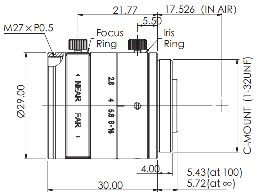 | Magnification(x) at MOD | 0.071X at working distance of 100mm |